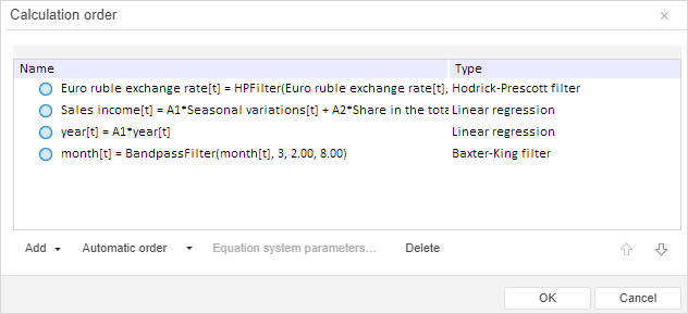 Setting up calculation order enables the user to order model equations according to their relationships.