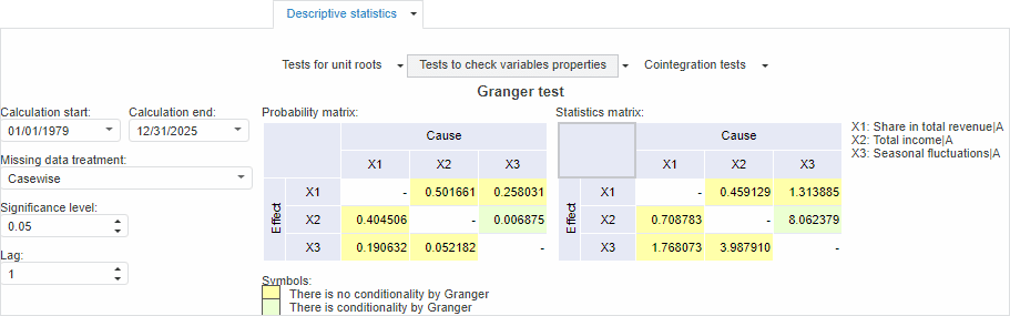 TIP. To calculate descriptive statistics by using the R methods, select the Use R on Calculating Descriptive Statistics checkbox on the Calculation tab in the Parameters dialog box. The feature is available, if in Foresight Analytics Platform has R package connected. For details see the How to Set Up Integration with R? section.