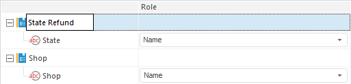 The Name role. Values of fields with the Name role are imported as names of elements. If this role is set for several attributes, hierarchical dimension is created. Arbitrary hierarchies such as SHOP-STATE can be organized using this role. Merging with calendar dimension is forbidden.