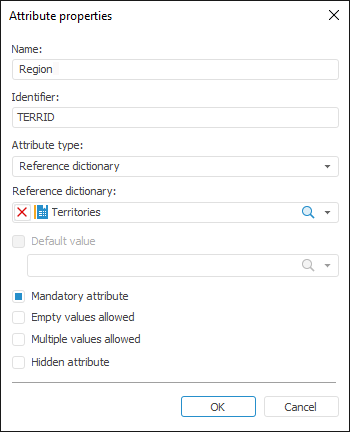 To work with attribute properties, use the following dialog box:
