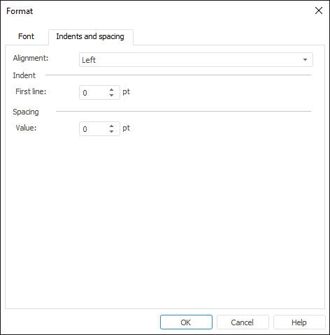 To set up text alignment in a text block, use the Indents and Spacing tab of the Format dialog box.