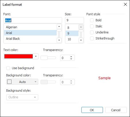 To set up label format, use the Label Format dialog box that is identical to the Font tab: