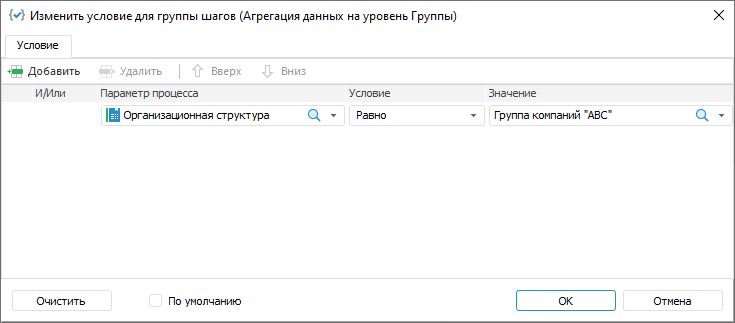 Примечание. Только для одной группы шагов этапа может быть добавлено условие «По умолчанию».