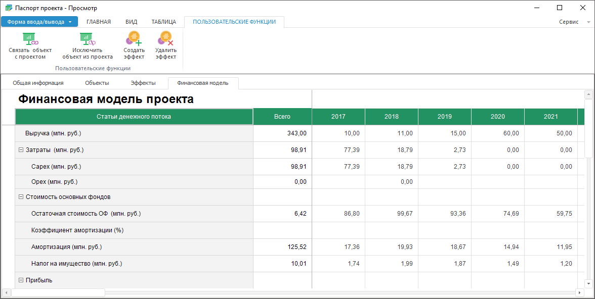 На листе «Денежный поток» будут отображаться агрегированные данные по движению денежных средств объектов, входящих в проект.
