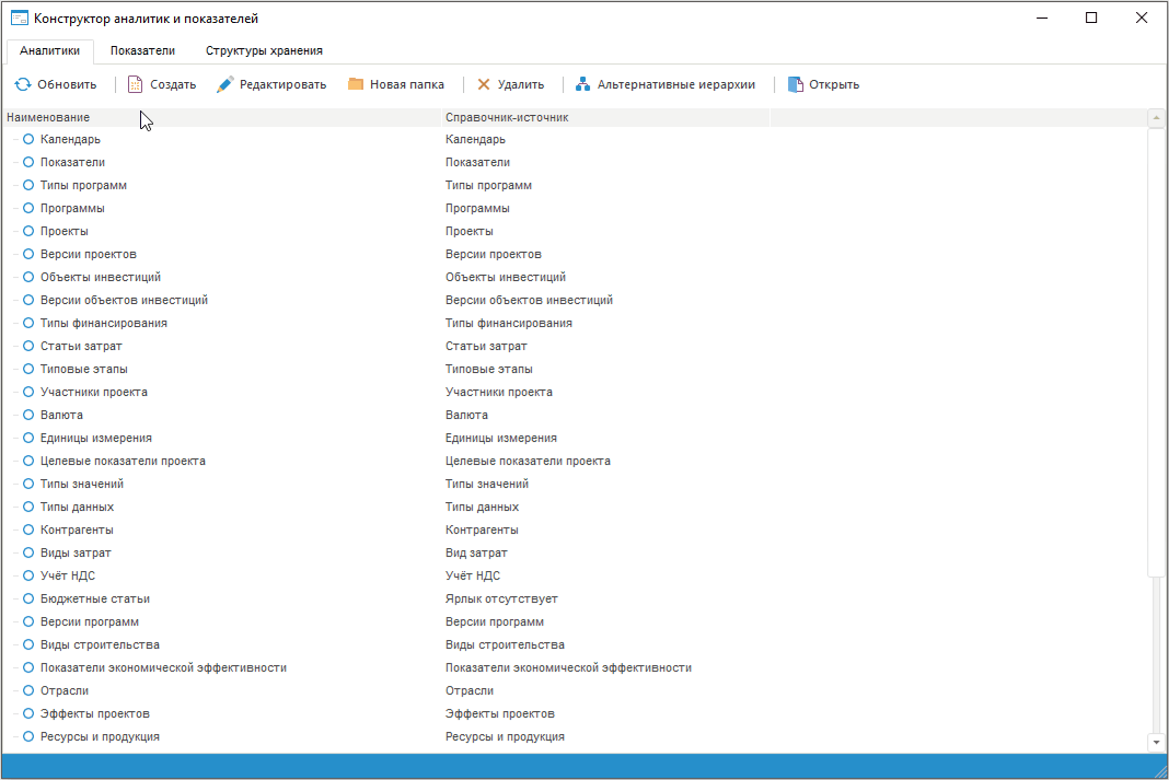 Для работы с аналитиками используйте вкладку «Аналитики» конструктора аналитик и показателей.