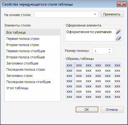 Пользовательские стили таблицы доступны в настольном приложении и настраиваются при помощи диалога «Свойства чередующегося стиля таблицы».