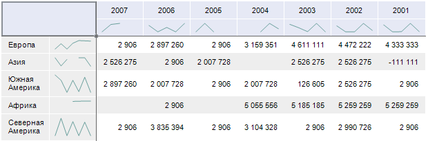 Спарклайны применяются для более наглядного представления больших наборов данных. Спарклайны могут отображаться для столбцов, строк и итогов таблицы.