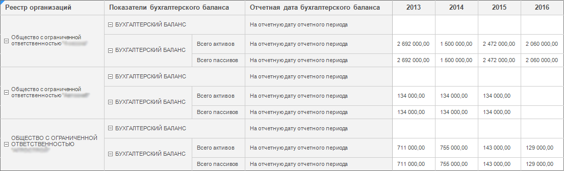 В данном примере выполнено объединение измерений «Реестр организаций» и «Показатели бухгалтерского баланса».