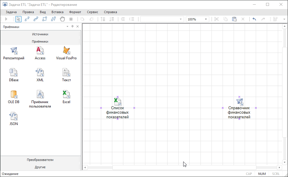 Построение задачи ETL осуществляется в настольном приложении. Для построения задачи ETL выполните шаги:
