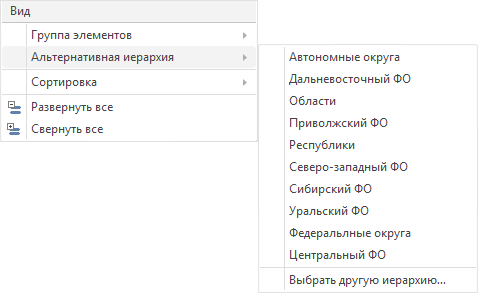 В качестве альтернативной иерархии воспользуемся справочником, который классифицирован по федеральным округам.
