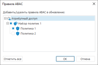 Для выполнения примера убедитесь, что в структуре атрибутного доступа содержится набор политик с двумя вложенными политиками и на диске С находится файл обновления «Update.pefx».