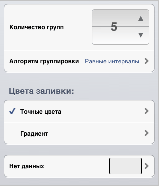 Таблица с настройками для управления цветом пузырьков на пузырьковой диаграмме и карте Apple: