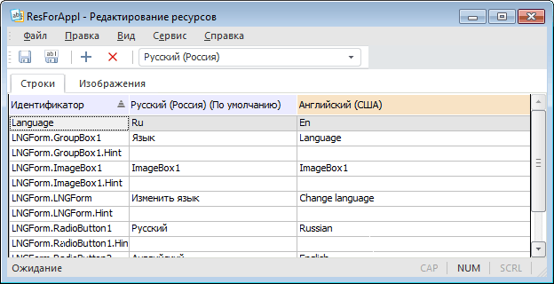 Таким образом, при запуске формы подписи компонентов и изображение в ImageBox1 будут соответствовать значению элементов ресурсов для русского языка.