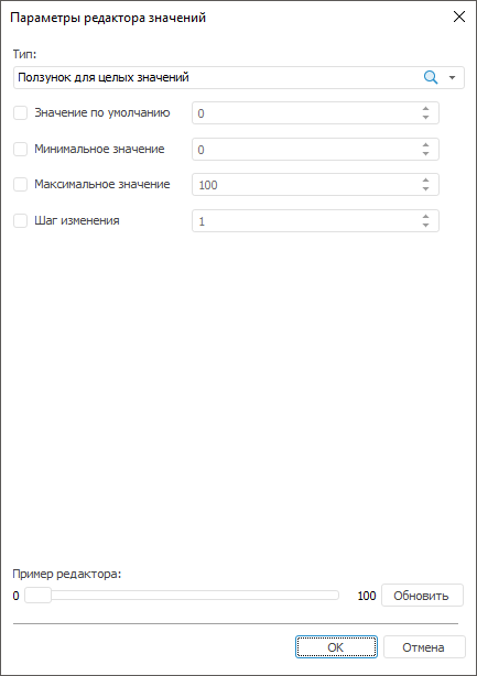 Если редактор значений используется для задания значений параметров объектов, то учитывайте следующие особенности: