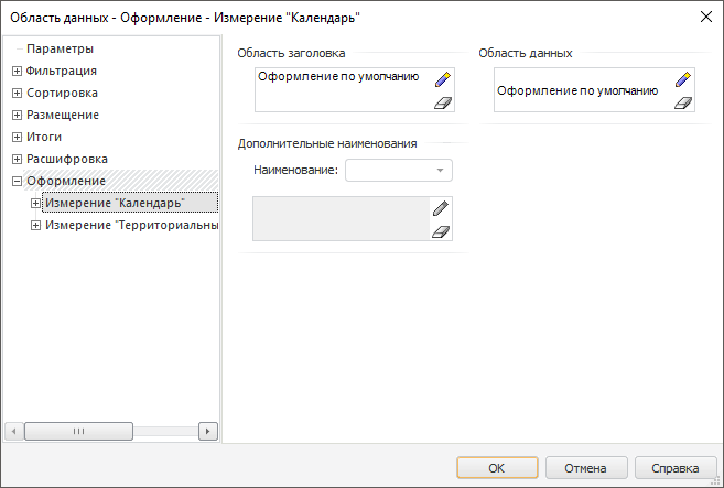 Настройка оформления, привязанного к измерениям, аналогична заданию общих настроек оформления.