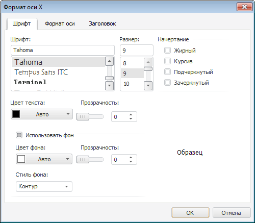 Для настройки формата оси задайте параметры на вкладках диалога: