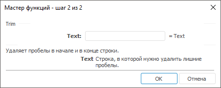 | =Trim(" ва ва " ) | «ва ва» | Исходная строка ва ва , в начале и конце которой были удалены пробелы. |