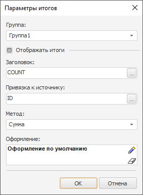 Примечание. Для настройки итогов в области должна присутствовать хотя бы одна группа.
