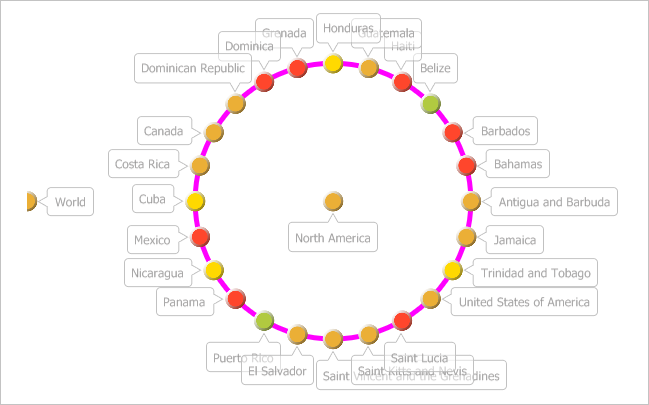 Before executing this example, the bubble tree looks as shown on the description page of the IVZBubbleTree interface. Select purple color for orbit lines in a bubble tree, and select the number of colors for the chart palette: