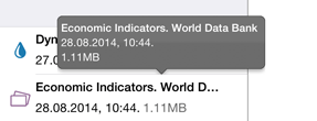 The date of creating a report in the desktop application and object size are displayed under the report name.