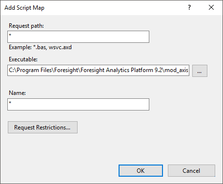 In the web server the directories and pools are created automatically on installation of Foresight Analytics Platform web application (FP9WebServer.exe).