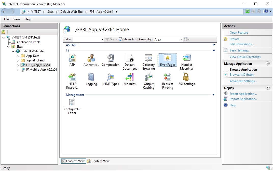 1. Make sure that the fpBI_App_v9.2 x64 virtual directory is selected.