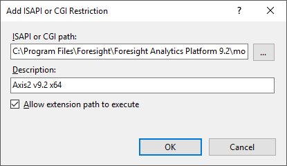 If it is not, open the editing dialog box and select the Allow Extension Path to Execute checkbox for each string. If the ASP.NET v4.0.30319 string does not exist, set up Microsoft .NET Framework 4.5.2.