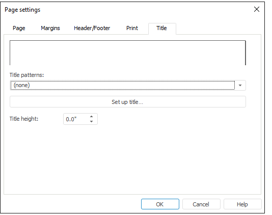 To set up report title, go to the Title tab of the Page Settings dialog box: