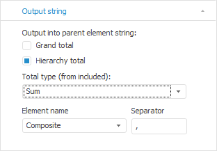 To set up display parameters of totals in the parent element string, select one or both checkboxes. The setting is separate for row and column totals.