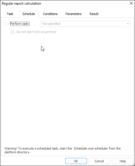 NOTE. Setting of schedule, condition and result is optional and can be performed depending on task requirements.