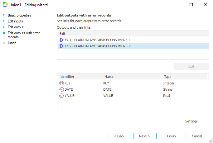 The Union page is used to establish a link between input and output fields.