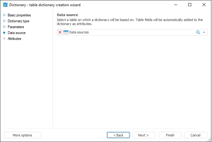 A common dictionary wizard opens after executing one of the operations. Common wizard pages are described in the Working with Wizards section. On the Object Type page select the required dictionary type: