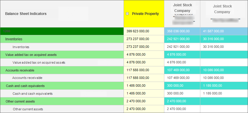 Foresight Analytics Platform enables the user to group sidehead or heading dimension elements by attributes. Values of grouping elements can be aggregated.