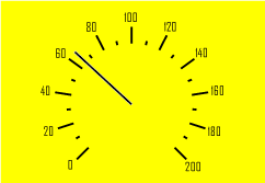 After executing the example, on clicking the button, formatting parameters of the speedometer displayed in the SpeedometerBox1 component are changed. A solid yellow color is set for the speedometer background.