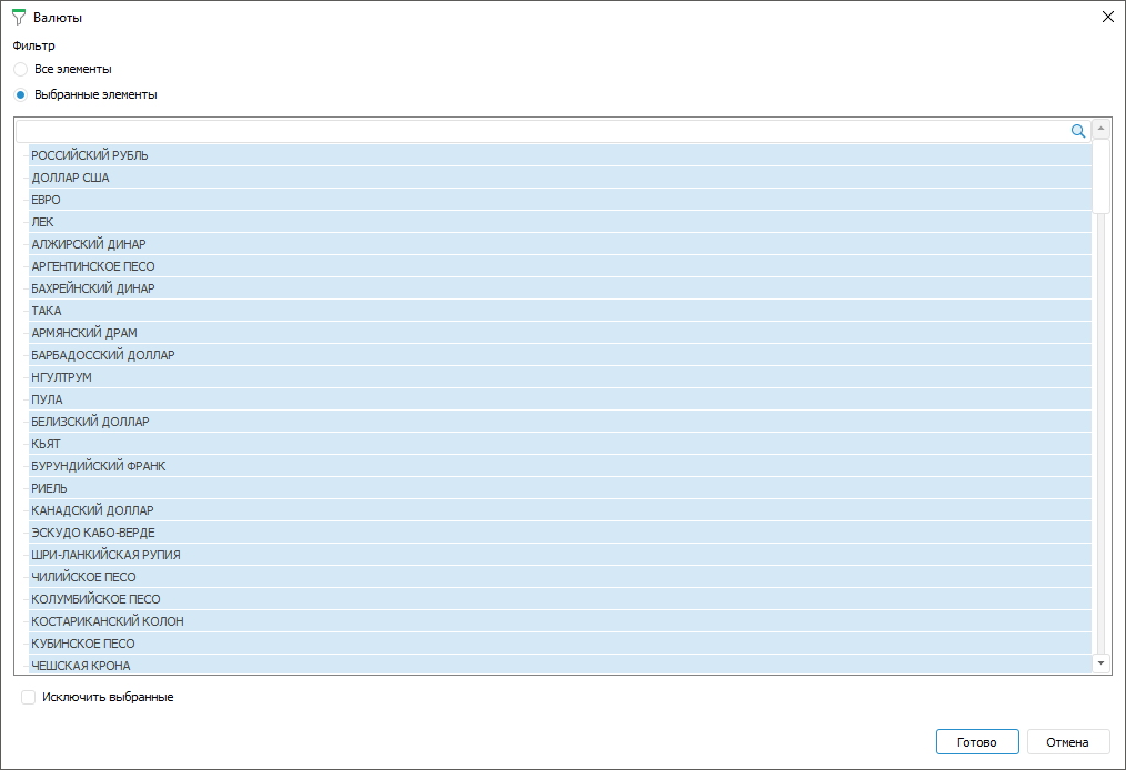 • Выбранные элементы. Отметьте только нужные элементы или исключите выбранные элементы из отметки, установив флажок «Исключить выбранные».