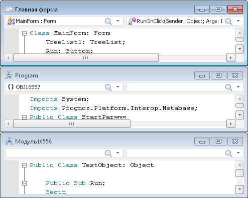 Иногда в процессе разработки (написания) модулей (форм) необходимо одновременно просматривать (редактировать) текст сразу нескольких макросов. Для организации окон можно воспользоваться различными командами из раздела главного меню «Окна».