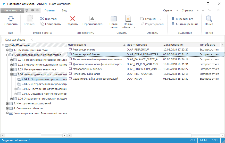 Для работы с объектами в репозитории применяется навигатор объектов: