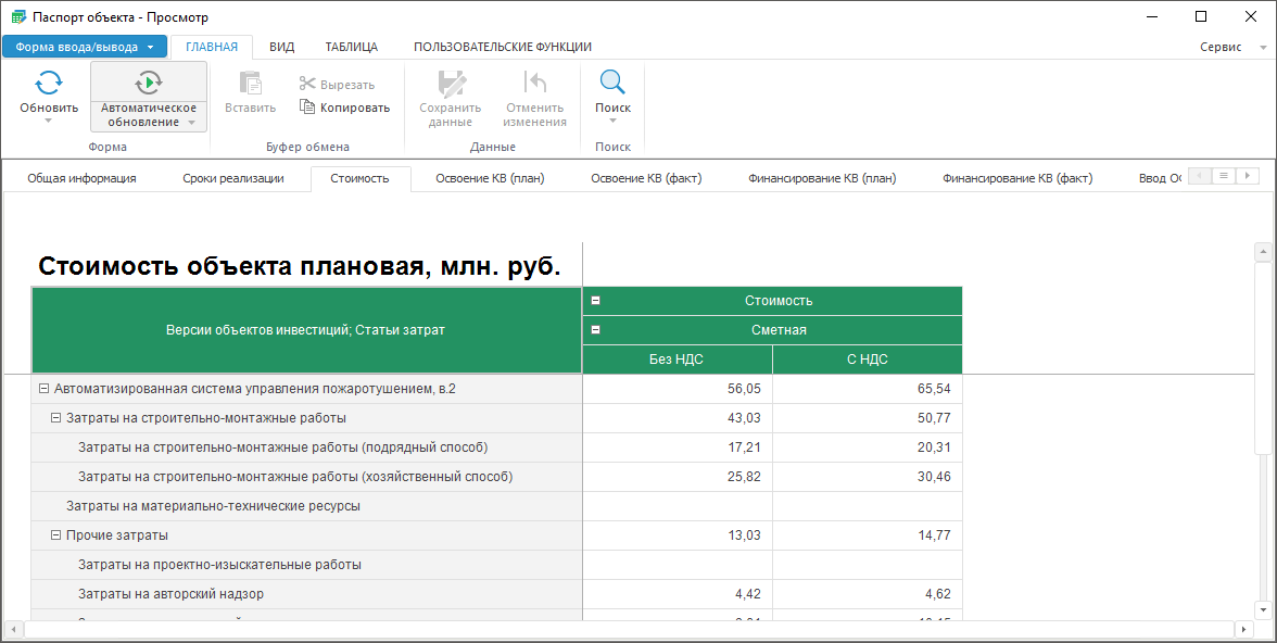 Паспорт объекта инвестиций используется для ввода, просмотра и редактирования плановых и фактических данных по расходной части объекта инвестиций.