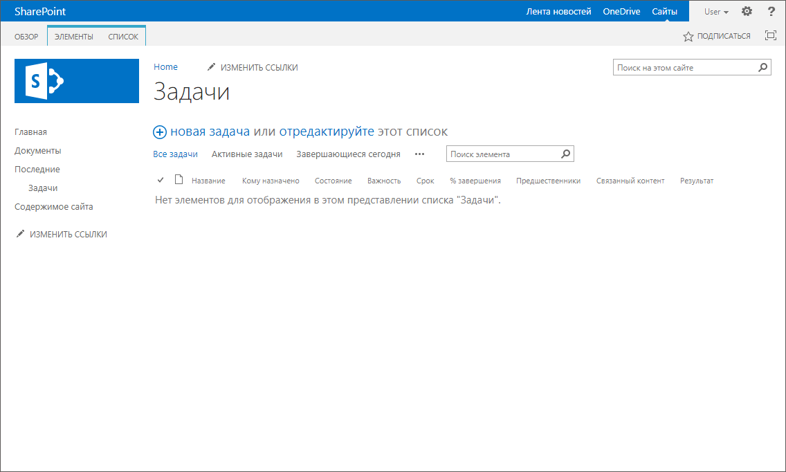 Откройте домашнюю страницу портала Microsoft SharePoint.