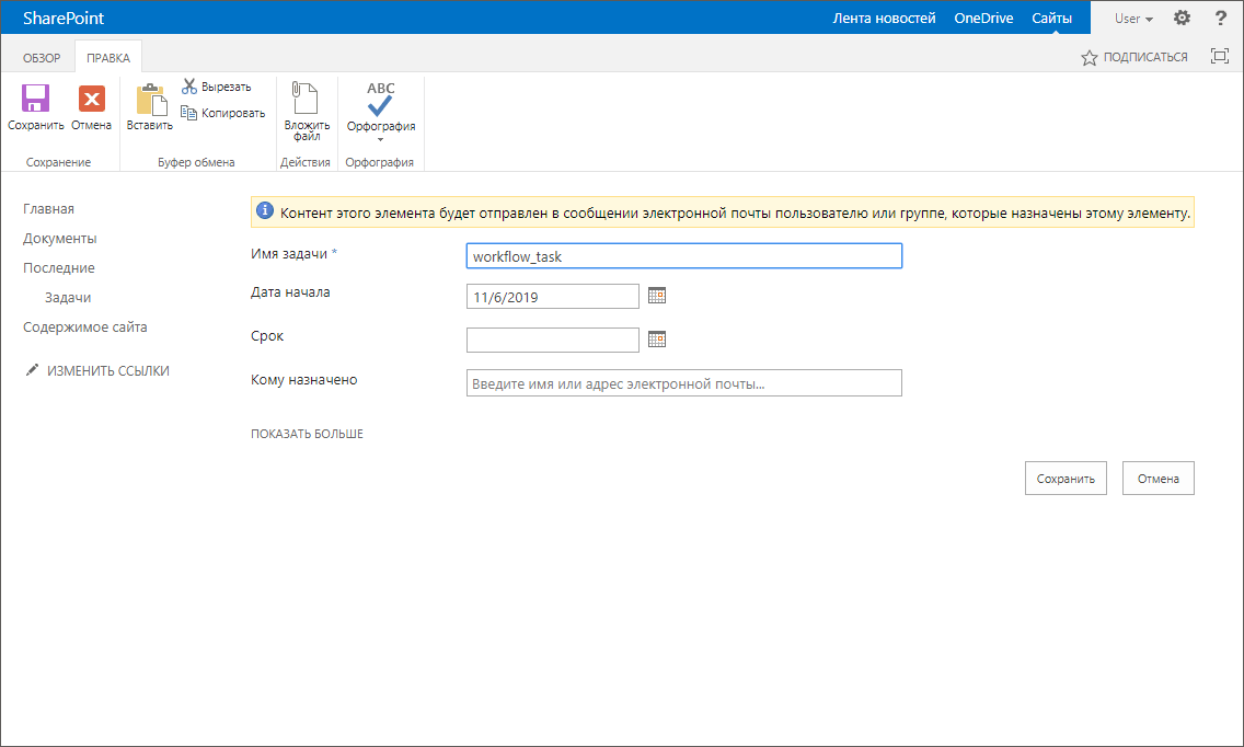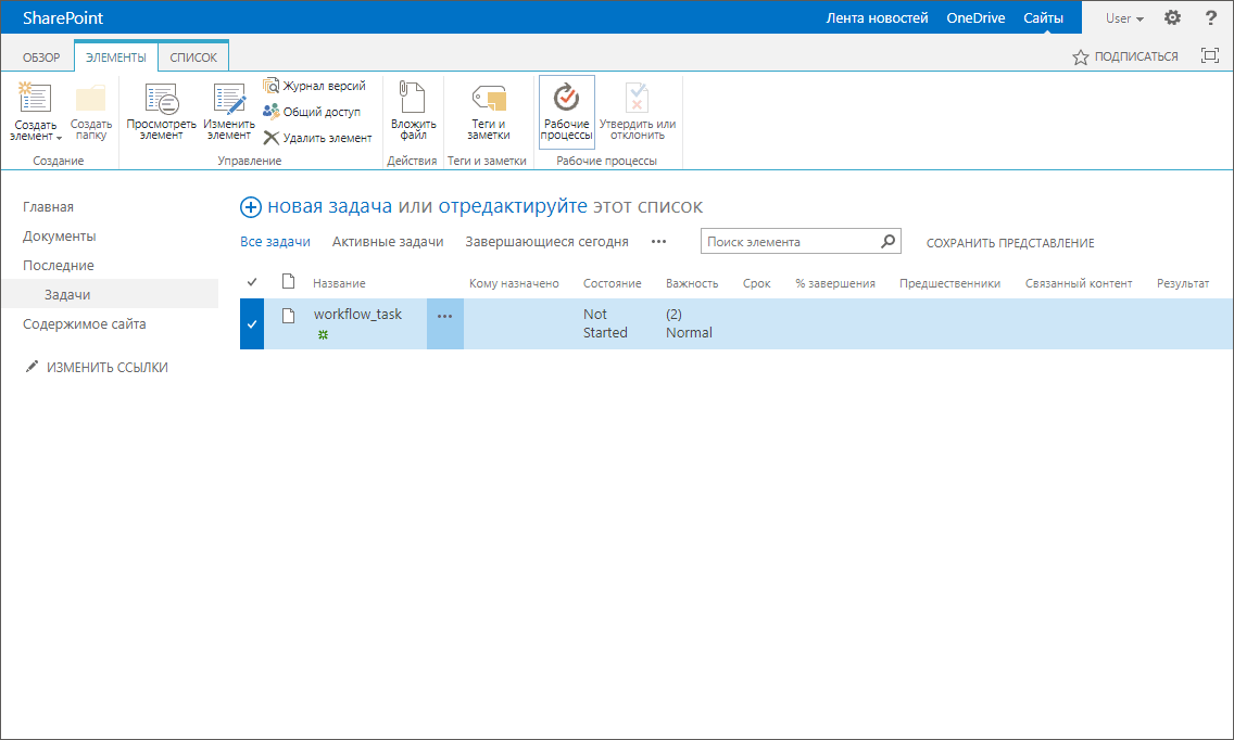 После выполнения действий будет открыто окно «Создание рабочего процесса списка - Задачи»:
