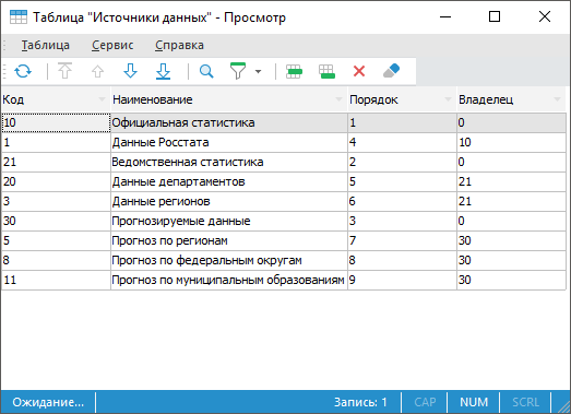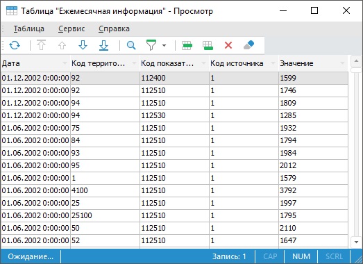 На экран будет выведено окно с данными. Описание и принципы работы с данным окном представлены в разделе «Работа с набором данных».