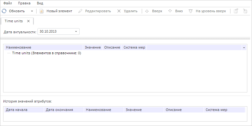 После нажатия на кнопку «Очистить» в результате срабатывания обработчика события CleanConfirmed будут удалены все элементы дерева справочника НСИ кроме корневого «Time units»: