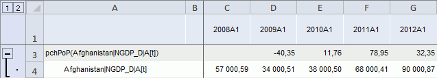 После применения функции в таблицу данных для каждого выделенного ряда будет добавлен ряд с наименованием вида «pch<Период>(<Имя_Ряда>[t])(<Имя_Ряда>)», содержащий результаты расчета. Например: