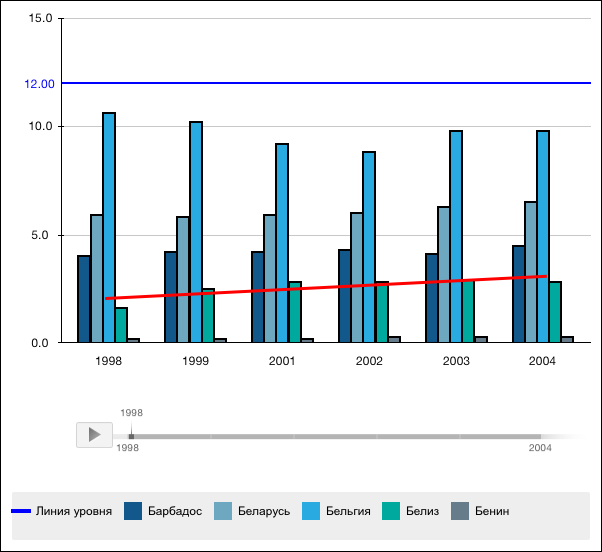 В примере описано создание диаграммы, содержащий линию уровня и линию тренда.