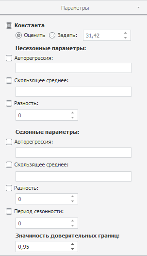 Авторегрессия. По умолчанию флажок снят. Если флажок установлен, то учитывается указанный порядок несезонной/сезонной авторегрессии;