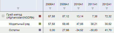 После применения метода в рабочей книге на основе каждого выделенного ряда будет создан вычисляемый ряд с наименованием вида «Грей-метод(<Имя_Ряда>)», содержащий результаты расчета. Например: