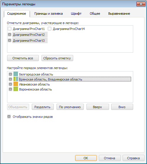 настройки содержимого общей легенды диаграммы нажмите кнопку