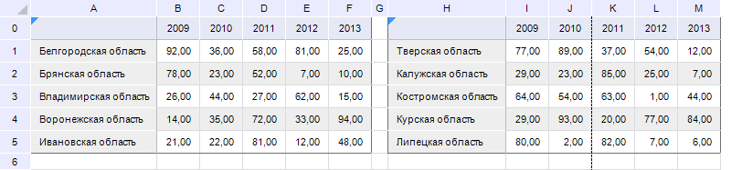 Установим для этого листа разрывы страниц таким образом, чтобы вторая область данных размещалась при печати и экспорте на отдельной странице. Для этого: