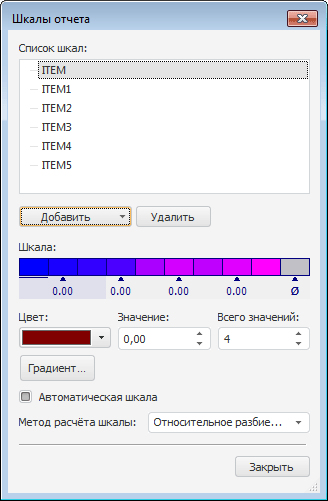 Для добавления цветовой шкалы нажмите кнопку «Добавить» и в раскрывающемся меню выберите пункт «Добавить цветовую шкалу». Окно «Шкалы отчета» примет следующий вид: