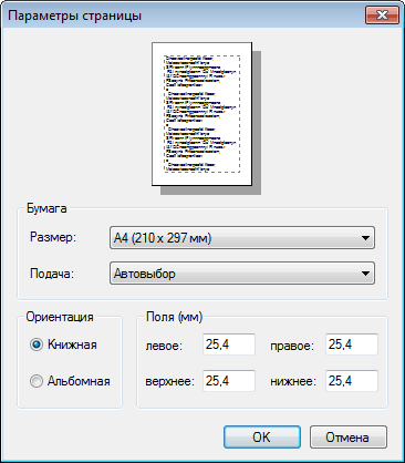 «Параметры страницы».